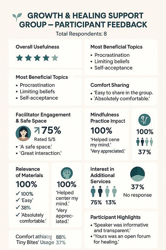 Sandy is GREAT!!!! She takes the time to listen and gives amazing feed back. The best thing is she doesn't give you the whole 'how does that make you feel' thing. She also is very honest with her feedback. She takes your specific situation personally. You aren't a client you're family and they are committed to your health. I absolutely love everything about them.